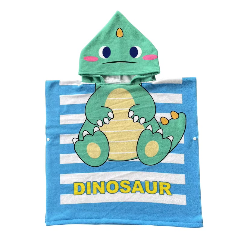 The built in hood provides extra coverage for the head, while the loose poncho style makes it easy for kids to wear and move around freely. Featuring a playful ocean and shark design, it adds a fun and cheerful look that kids will love.